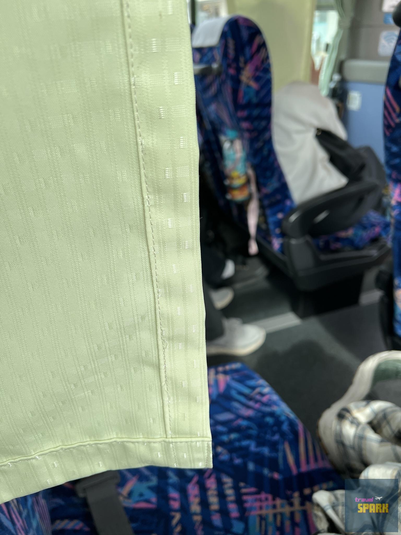 是說這班車隱私性還蠻強的,雖然是一般的巴士,但兩人坐中間還有一個布簾遮著。前往高松的巴士除了有22的座位外,還有111的三人分開一排座位,大家可以依照自己的喜好做選擇,巴士行駛中有停留一次全家讓大家買食物與上廁所,我的巴士是在淡路島中間休息的。