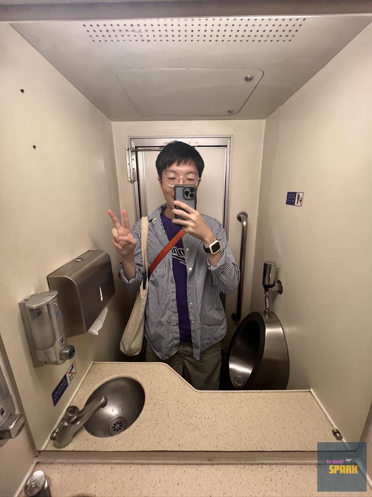 我坐的艙等是沒有浴室的,所以基本上我就在這狹小的空間裡面卸防曬、洗臉、刷牙,一天沒洗澡是不會怎樣啦哈哈,雖然那時候熱得要死,不過隔天到曼谷早上上完班之後,馬上到飯店的第一件事情就是洗澡XD