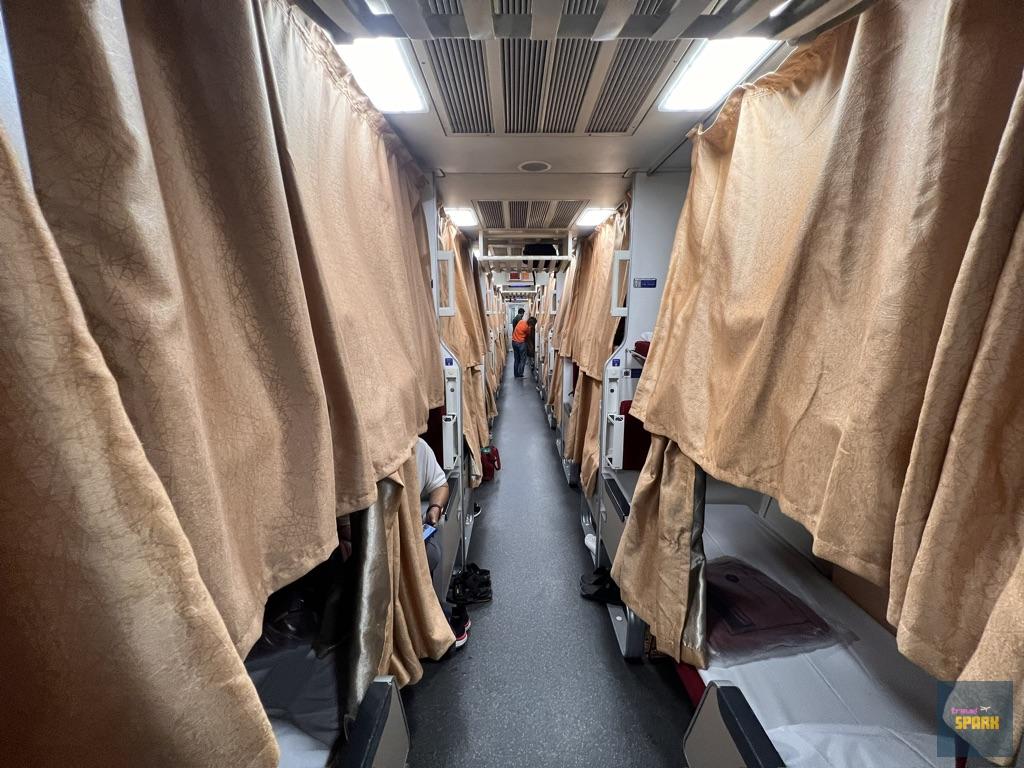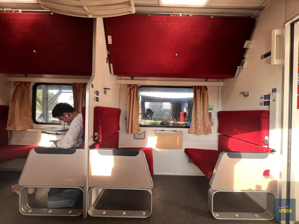 我是坐下午17:45的火車,上車之後都是面對面的座椅,每個人都會發一罐小罐的水,我在車上都一直祈禱對面不要有人坐XD,還好到晚上的時候對面都沒有人,是到了我準備要睡覺的時候,才感覺到有人爬到上鋪去,早上才看到有人哈哈。上車前務必除了水跟食物外,一定要把訂票的檔案印下來,發車沒多久之後車長就會來驗票,我看網路上有人說用手機電子檔沒有辦法,我自己是沒有試過啦,所以還是建議大家要記得印下來!