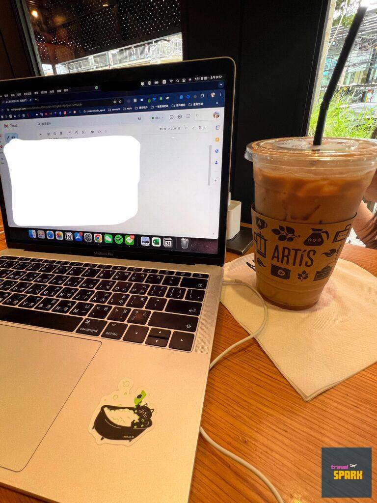 第二間是我這次工作的咖啡廳中最喜歡的,他在捷運「Ekkamai」站,不像是第一間Artis這麼近。喜歡它的原因主要是Wi-Fi完全不限時,加上整個咖啡廳蠻寬敞的,給人有一種很舒服的感覺,他們也有賣自己的文創小物,我就買了三張貼紙貼在我的電腦上,員工也都蠻親切的,每個位子幾乎都有插座,所以在這邊工作一整天也不用擔心什麼!